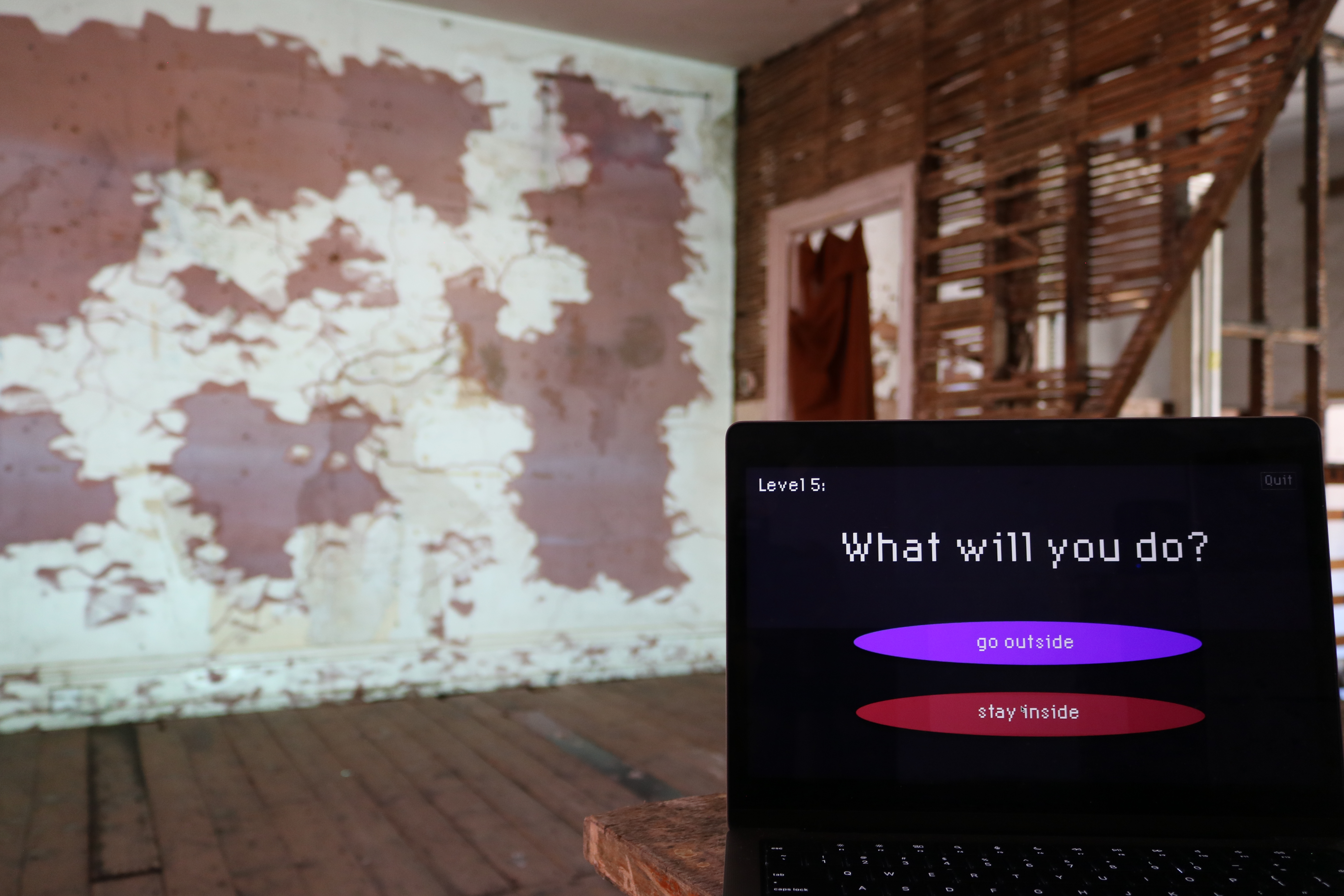 Experienced on-screen, in the room around you, and as a performance, Quotidian Creative flips the authority of the technology away from escaping reality toward imbuing reality with a bit more creativity. On the surface, the game simply forces its player to make choices. However, through immersive, choice-responsive projections bringing life to the metaphor of breaking down walls, and an intimate conversation with the artist in the moments that follow each choice, Armouti tempts the player to pick at their own habitus. She tempts them to bring their beliefs, assumptions, and limitations to speech, and to come to their own conclusions about them. In doing so, she invites the player to choose between the security of the status quo and the potential of any suppressed wishes, to consider—in continuation of the metaphor—not only where they are but also where they want to be.